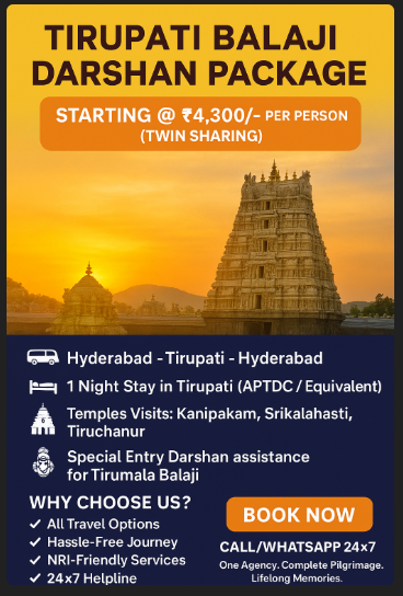 Whether you are an NRI visiting from abroad or a devotee from any part of India, our Tirupati Darshan Package is designed for a comfortable, value-for-money, and hassle-free pilgrimage.